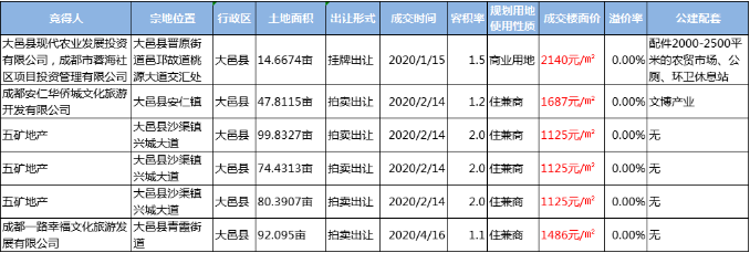 ①、大邑2020年土拍小资料(下图来自四川乐居)