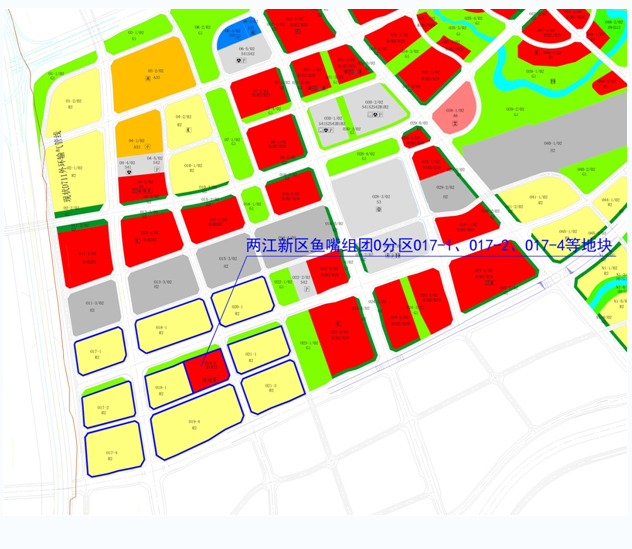 位置:两江新区鱼嘴组团O分区O17-1地块、O17-2地块、O17-4地块、O18-1地块、O19-1地块、O19-2地块、O19-4地块、O20-1地块、O21-1地块、O21-3地块