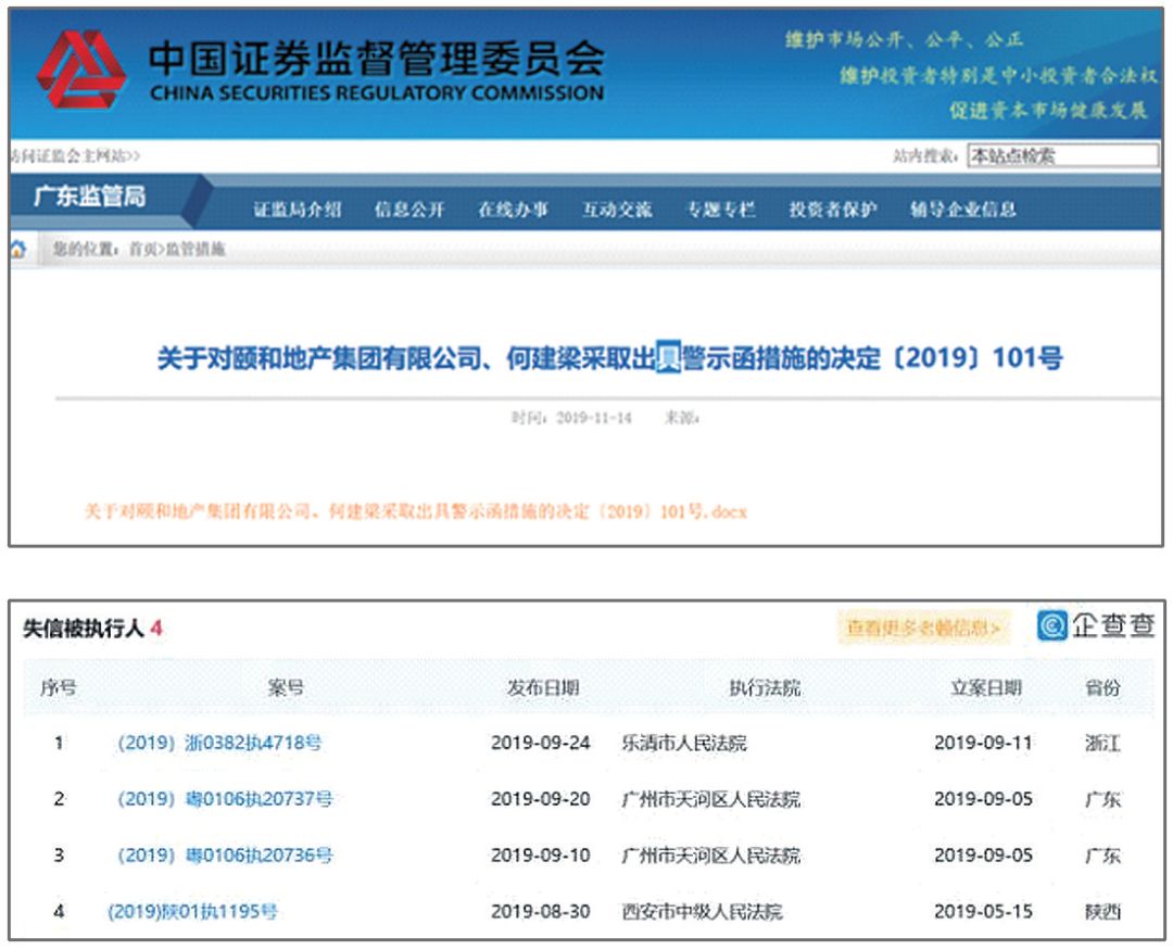 “老牌粤系房企”颐和地产资金链紧张传闻由来已久。今年10月,由于流动性恶化,公司未能按时偿付“17颐和01”和“17颐和04”的债券利息及本金,已构成实质违约。另据企查查统计,颐和地产在2019年已经四次被法院列为失信被执行人名单,涉及民间借贷纠纷、商品房预售纠纷、合同纠纷多项。