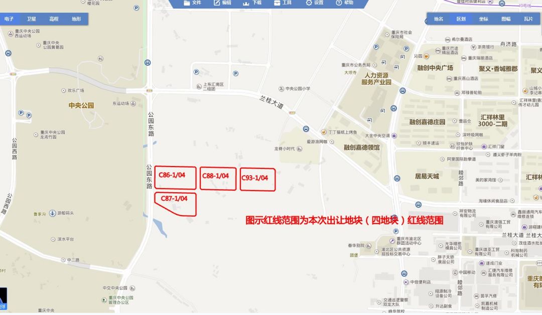 位置:两江新区两路组团C分区C86-1/04、C87-1/04、C88-1/04、C93-1/04号宗地